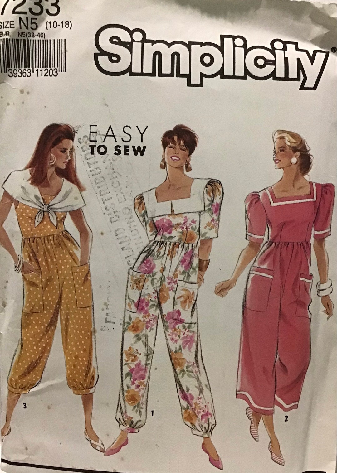 Sewing Pattern Simplicity 7233 Womens Jumpsuit In 2 Lengths Etsy Israel